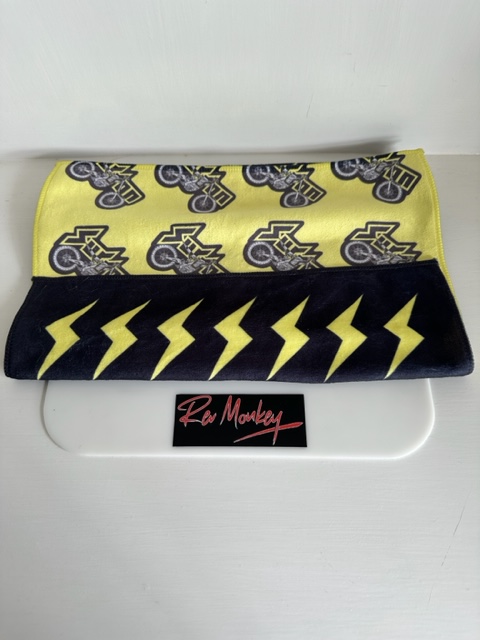 SURRON RACING SPORTS TOWEL – Ideal for carrying in a ruck sack for those hot days out on the trail with your Light Bee, Ultra Bee or Storm Bee. Towel is made from soft cotton and measures 350mm wide x 730mm long. Black and yellow SURRON ‘S’ on one side and any yellow on the rear with SURRON bike logo.