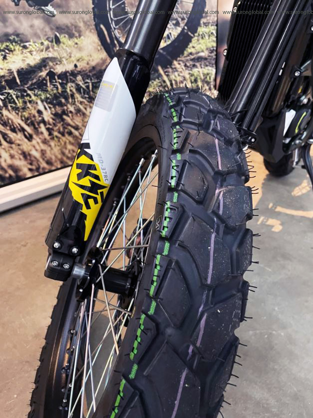 Front Wheel 19″ wire-spoked rim, 90/90 – 19 all terrain tire