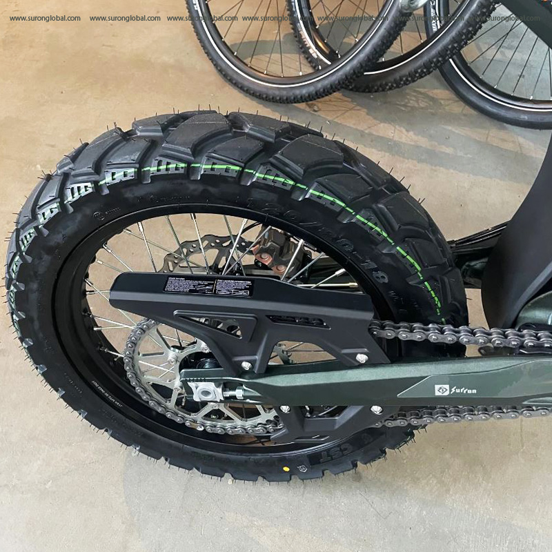 Rear Wheel 18″ wire-spoked rim, 120/80-18 all terrain tire